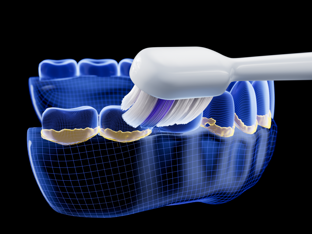 Postavljanjem zubne četkice na 45° na temelju zuba i provođenjem nekoliko sekundi na svakom zubu možete postići iznimno temeljito četkanje i čišćenje zubnog mesa bez ikakvih oštećenja ili nelagode. To je prednost kombiniranja sonične i oscilirajuće tehnologije.