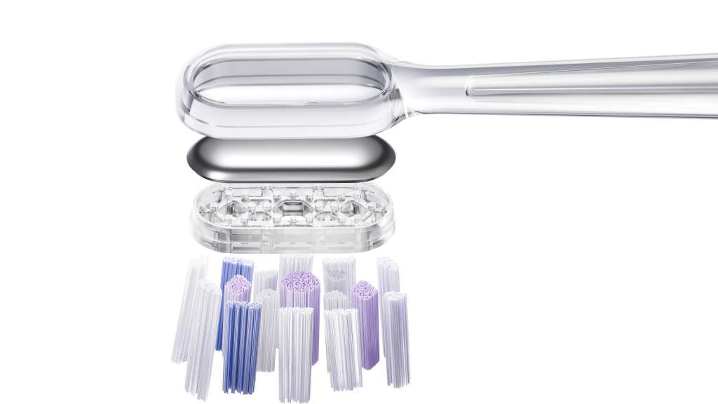 Tijekom četkanja, uređaj temeljito čisti visokofrekventnim vibracijama od do 66.000 vibracija u minuti i kontinuiranom ultraširokom oscilacijom do 60°. Intuitivna aplikacija omogućuje vam da u nekoliko sekundi prilagodite postavke vibracije i oscilacije, uz izbor od čak 2000 mogućih kombinacija, tako da svatko može oblikovati iskustvo četkanja prema vlastitoj osjetljivosti i jedinstvenoj građi zuba. Iskustvo prilagodbe poboljšano je s 3 vrste nastavaka za četkicu za zube , što je trostruko više nego prije.